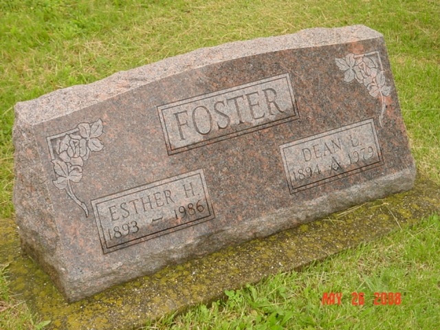 Memorials of Dean and Esther Henderson Foster. Esther, sister of Frank and Hobert Henderson, married Dean Foster. They are interred at the Rose Hill cemetery. Foster.headstone.JPG