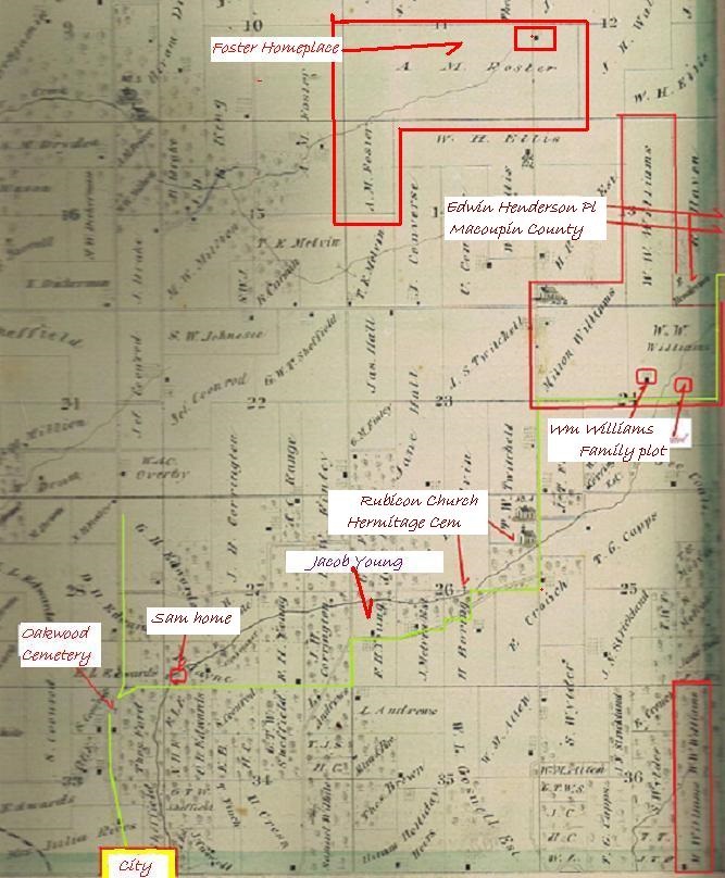 Deans family had settled north of the Williams & Henderson location, and accumulated 400 acres in this area as seen on the Rubicon Twp plat book from that era.