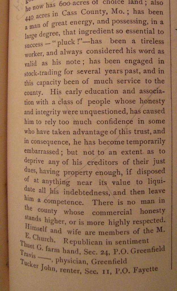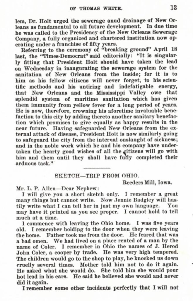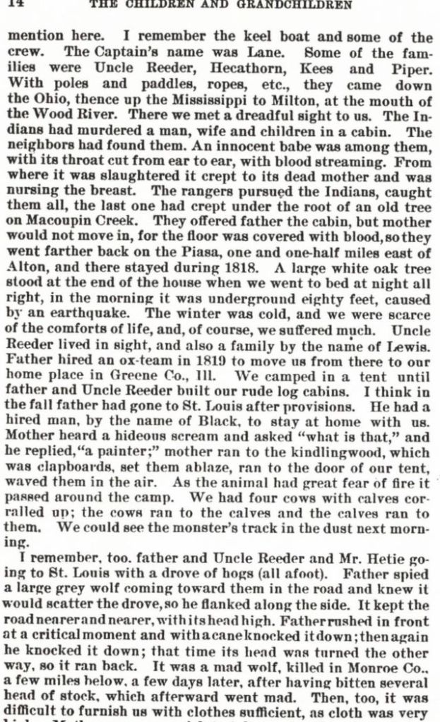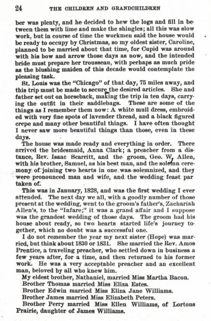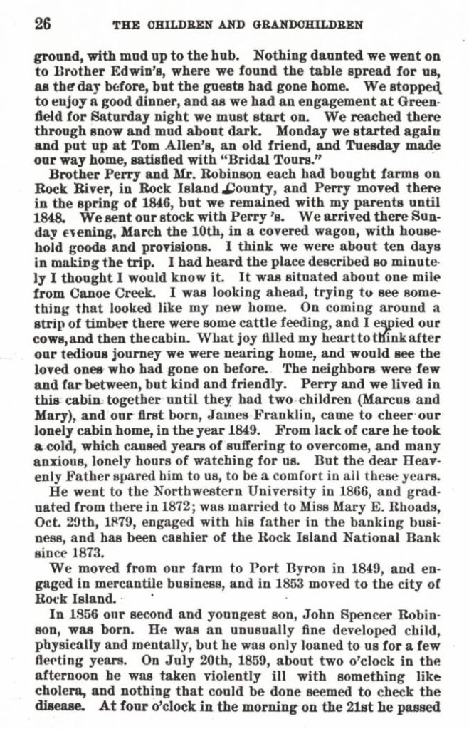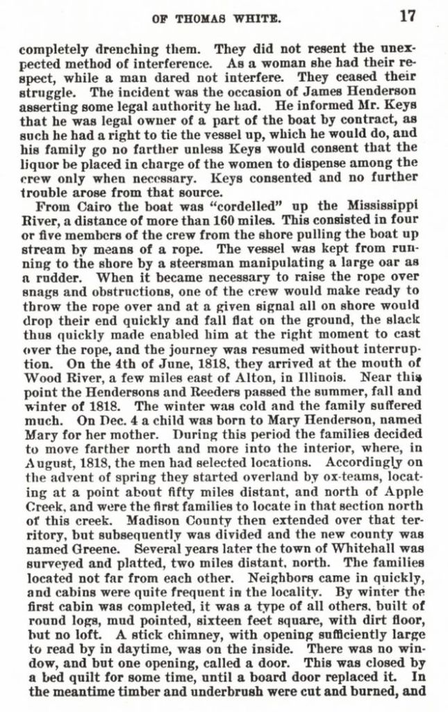 It is the work of Luther Prentice Allen that most, if not all, of my “Henderson” history originates. His books were made possible by the input of prior generations. Several of his mother’s (Caroline Henderson Allen) siblings sent snippets of family life as children of the pioneers, James and Mary Henderson. … But first is the “short sketch” written by his uncle Thomas Henderson, titled Trip From Ohio.