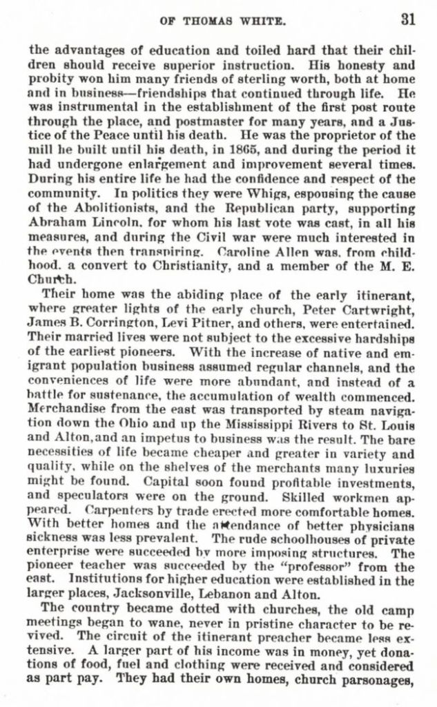 Next, the author speaks to his mother’s life as the firstborn of the James and Mary Henderson. ………… “On another post, I (Sam Jr) spoke of “slaves accompanying Wm Williams to Greene County”. I had not given thought to when they were freed, but L P Allen explains in this chapter that “they were freed upon entering the State of Illinois”. I missed that part of history, as well, my staff must have missed it also?”